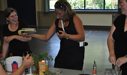 De cocktailshaker demonstreert 4 verschillende soorten cocktails waaruit jullie 2 cocktails per persoon kunnen kiezen om zelf te shaken.