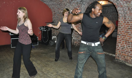 Gaandeweg de workshop worden de passen en combinaties ingewikkelder tot we aan het eind van de workshop tot een choreografische dans komen.
